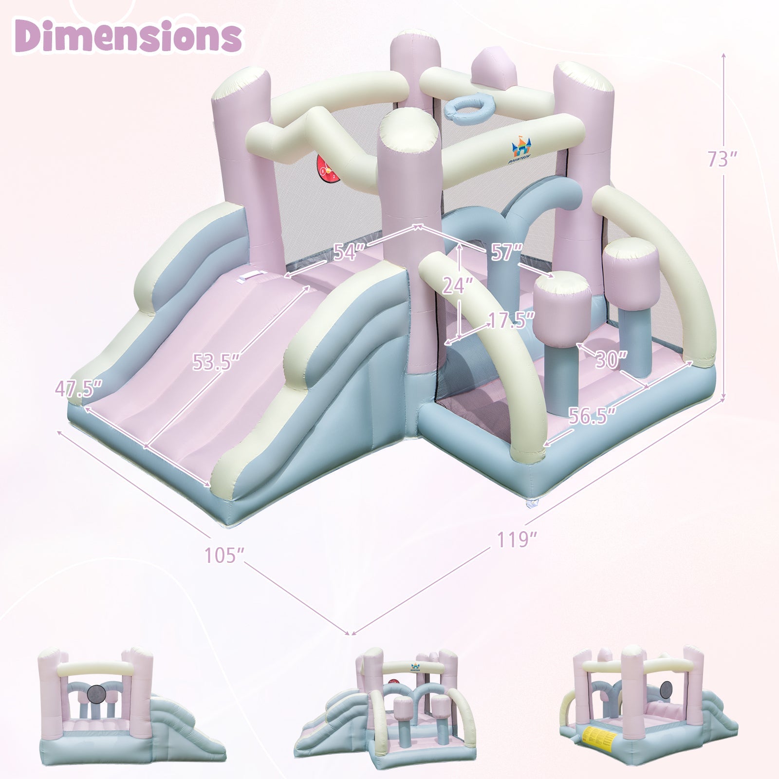 Kids Bounce House with Slide and 2 Boxing Columns for Party without Blower